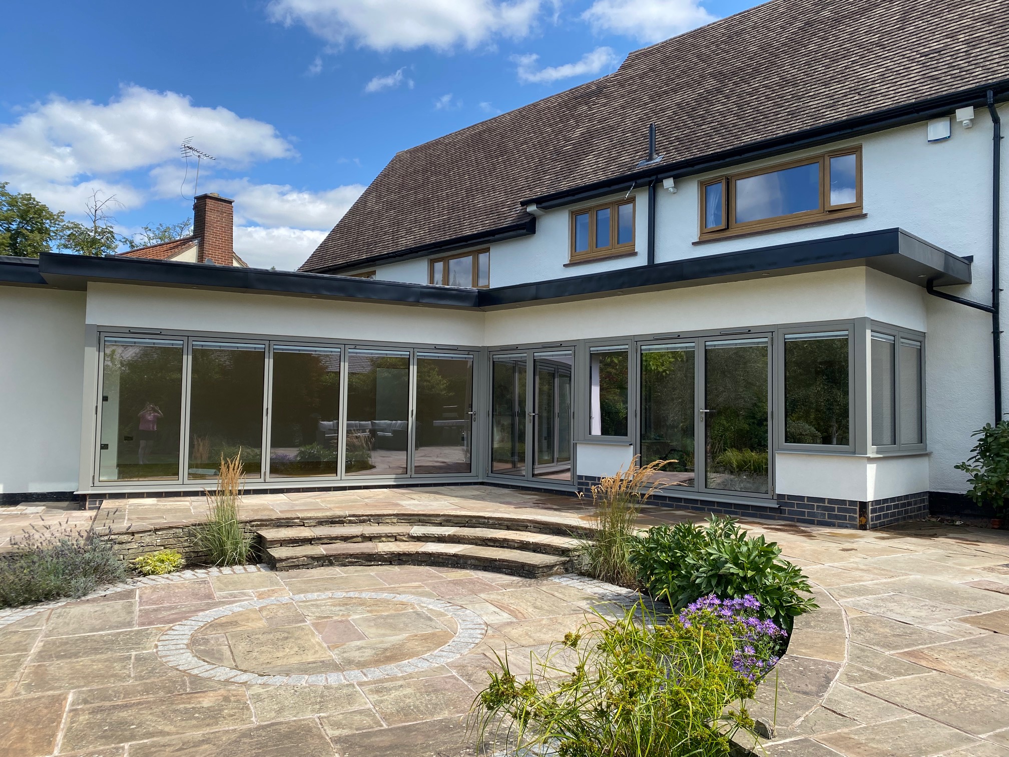 • A modern feel at the back with aluminium windows and bifolds
