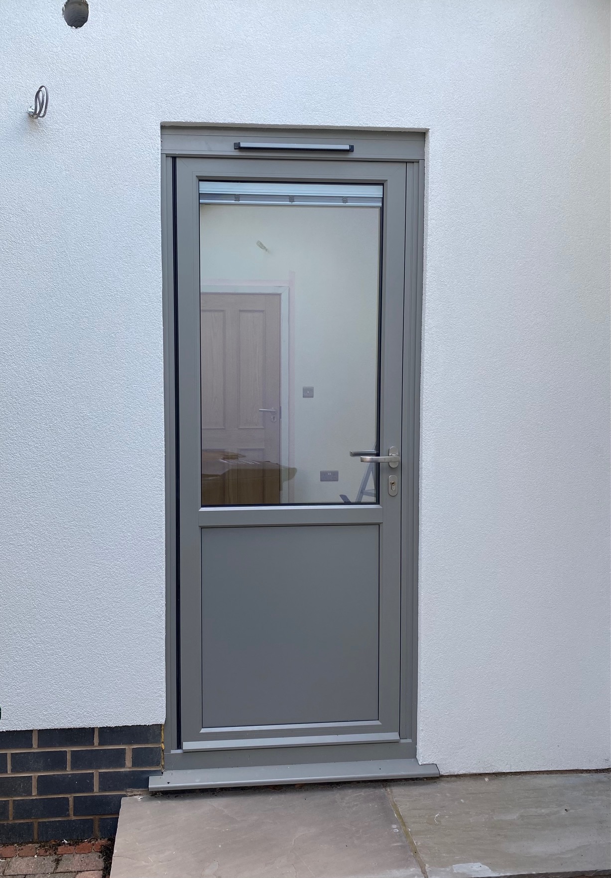 grey aluminium window with integral blinds
